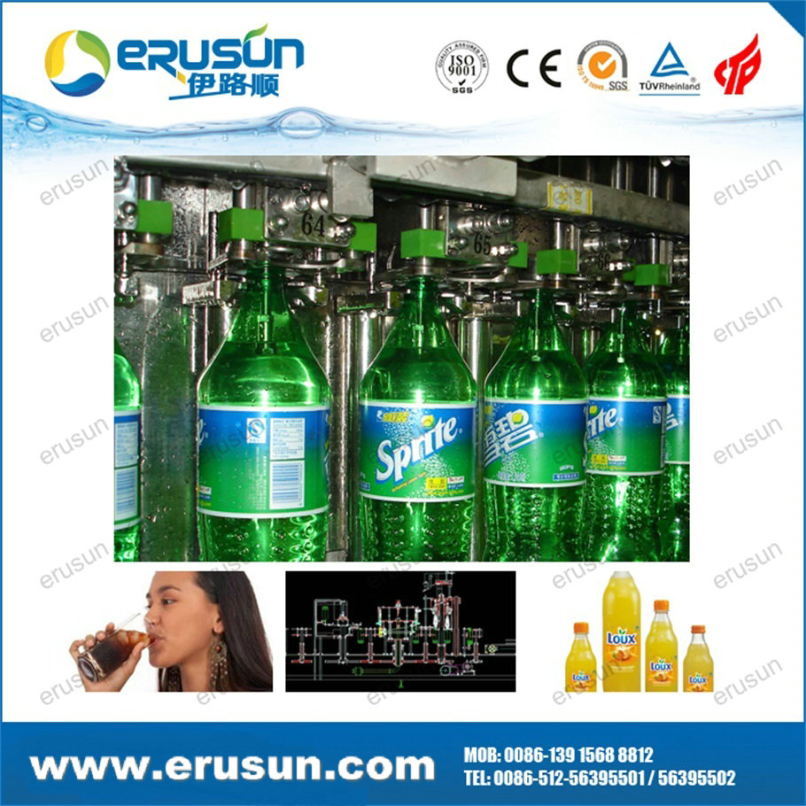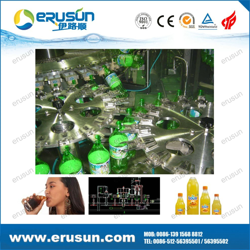 By 3-in-1 monoblock, the bottle goes through rinsing, filling and capping with little abrasion, and the transferring is stable, bottle changing is easier.