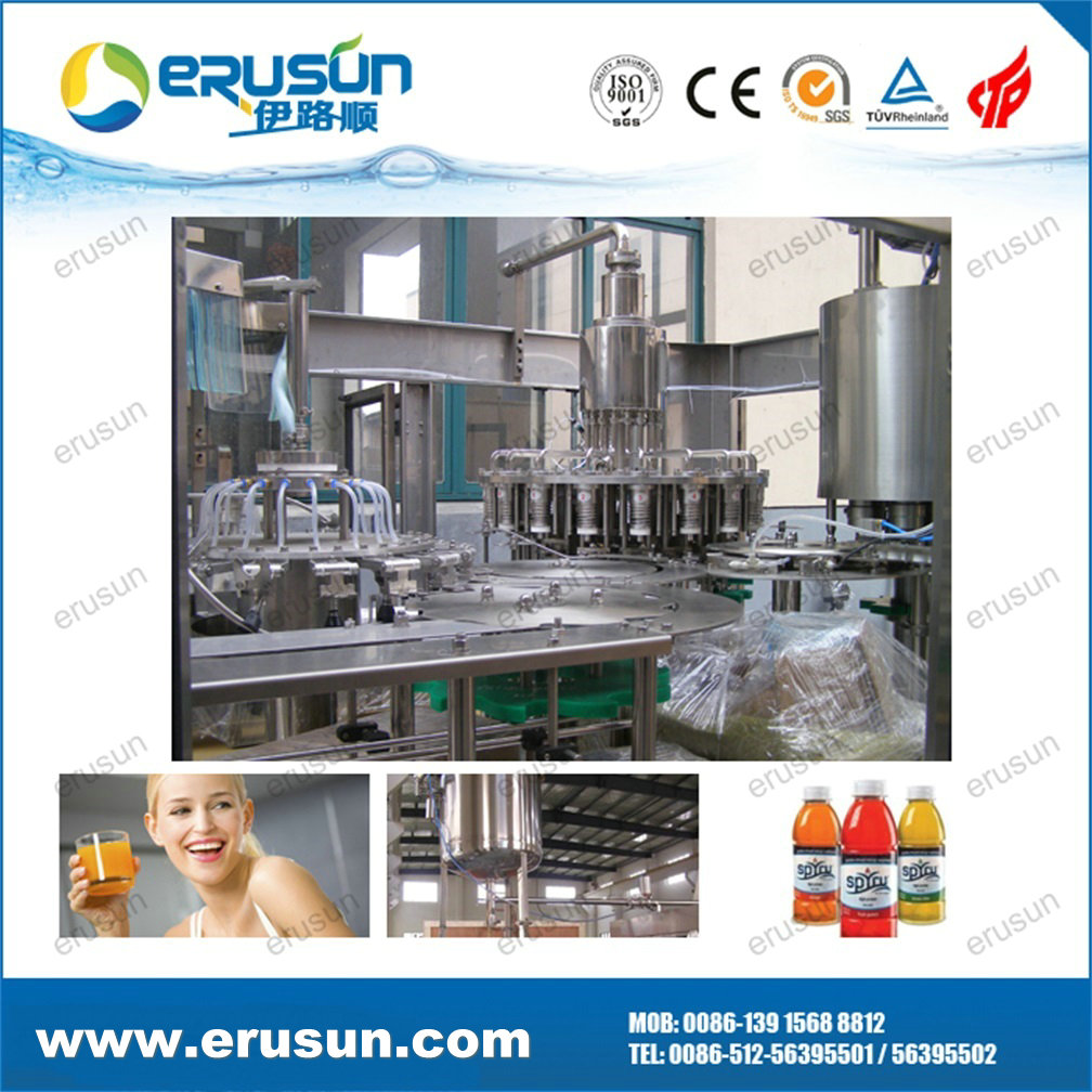 This hot filling machine is the standard 3-in-1 monoblock. But to the special production condition, another sanitizer rinsing could be added, that is 4-in-1 monoblock. The system has fully considered the beverage’s characteristics (such as the frothing of the tea drink and mixed juice) and the technical requirement of the hot filling.