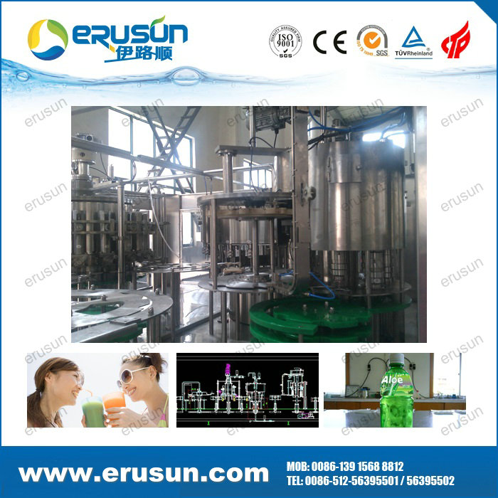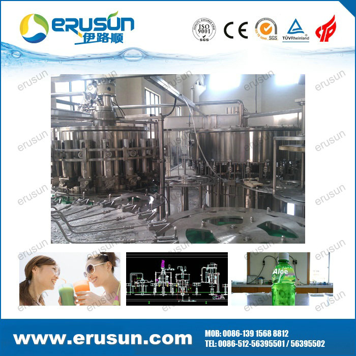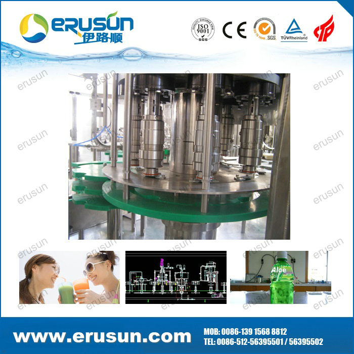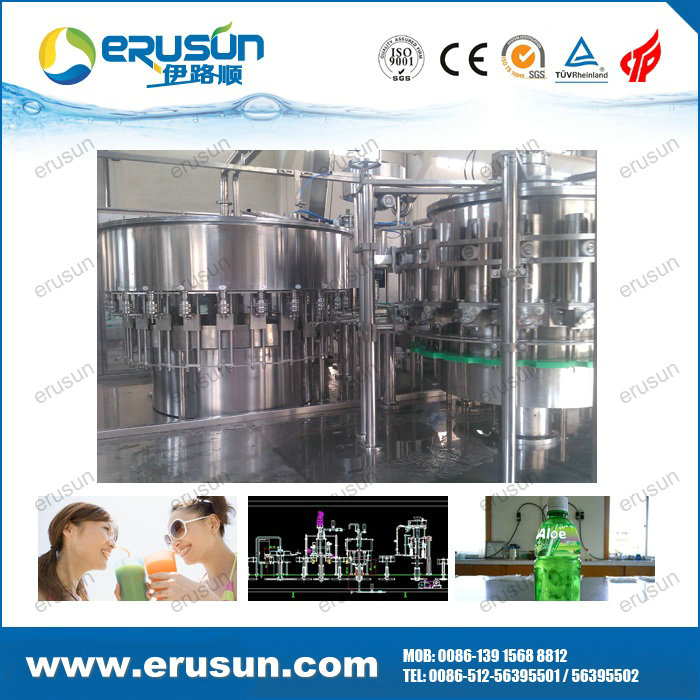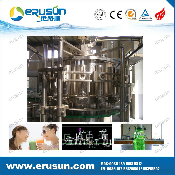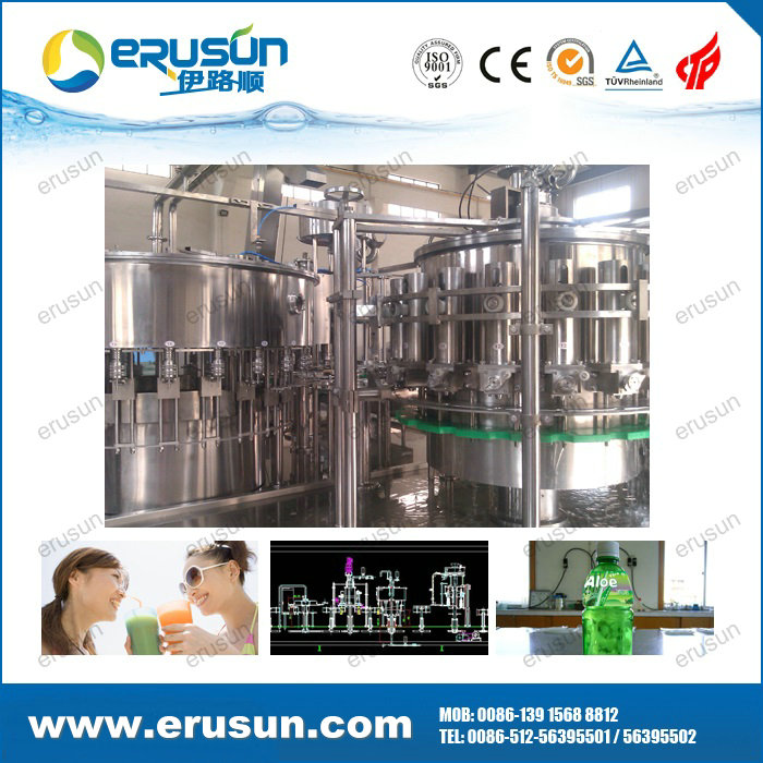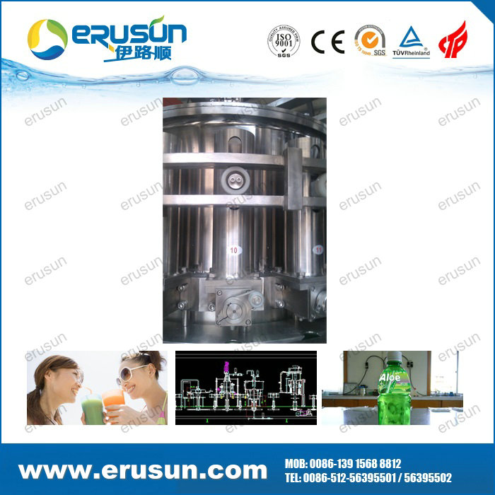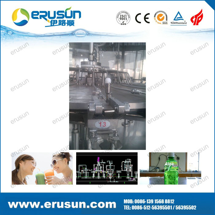 ERUSUN Pulp juice 4-in-1 filling machine is a set of rinsing, pulp filling, juice filling and capping in one of the moderate (high) temperature filling machine, pulp, juice separately filling solve the problem of uneven content.