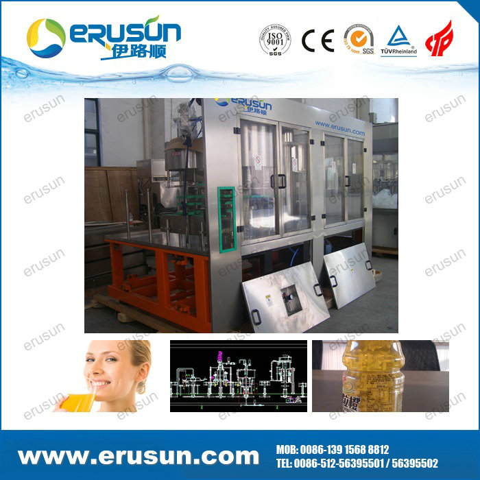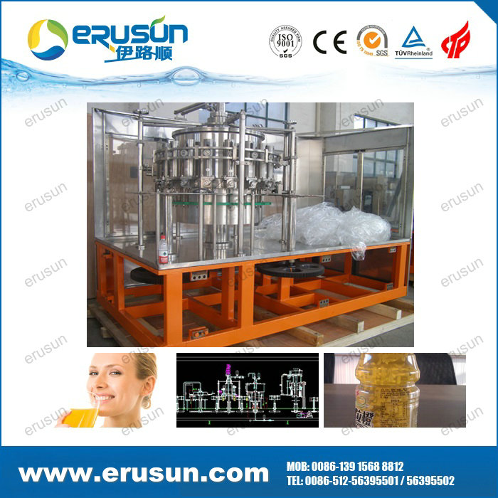 ERUSUN Pulp juice 4-in-1 filling machine is a set of rinsing, pulp filling, juice filling and capping in one of the moderate (high) temperature filling machine, pulp, juice separately filling solve the problem of uneven content.