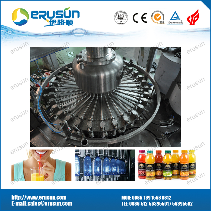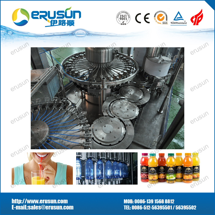 热灌装机标准机型为三合一,针对特殊生产条件,可增加一道消毒液冲瓶,即四合一。系统充分考虑饮料产品的特性(如茶饮料和混合果汁饮料易起泡)及热灌装的主要技术要求。