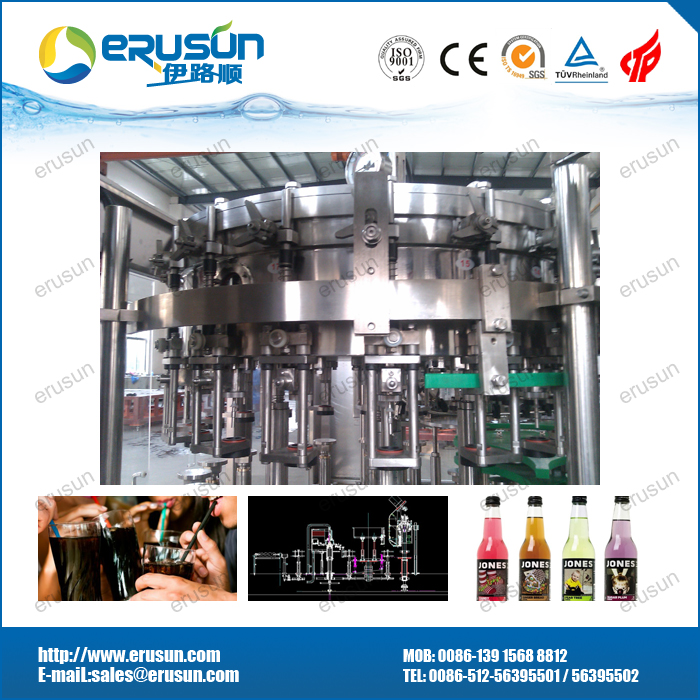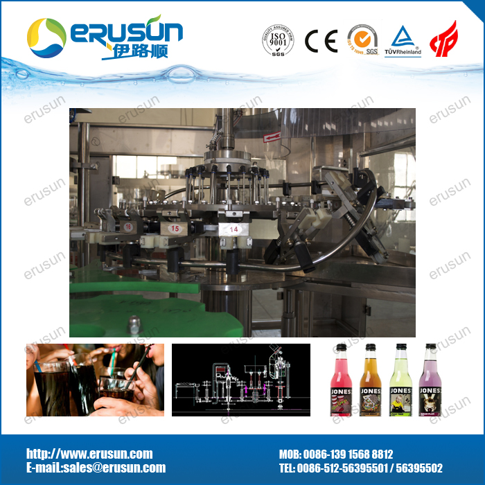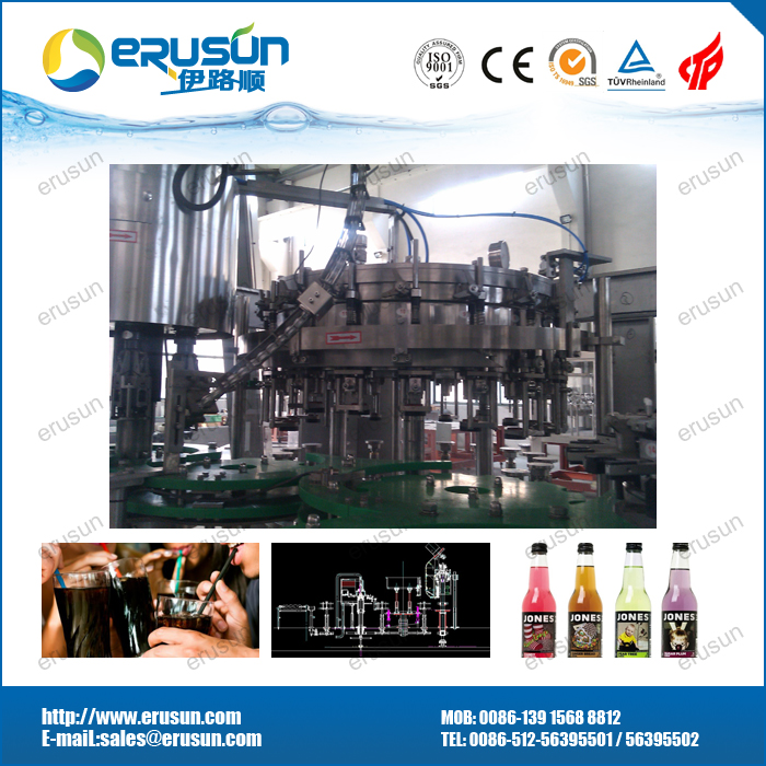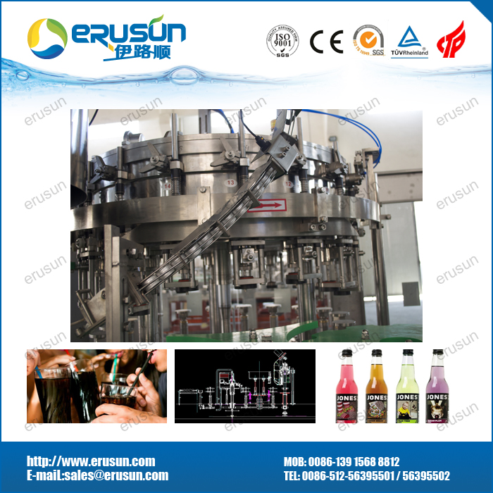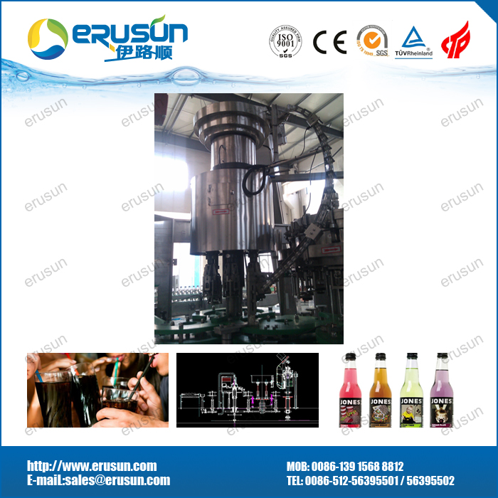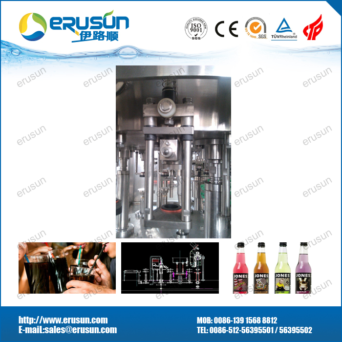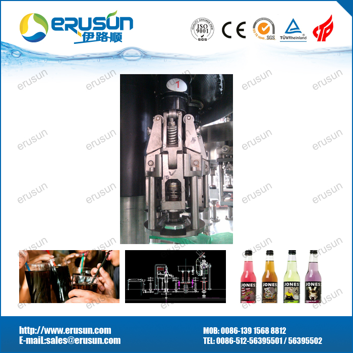 用于玻璃瓶的碳酸含气饮料灌装,瓶盖为铝质盖,产量2000/-18000/时。