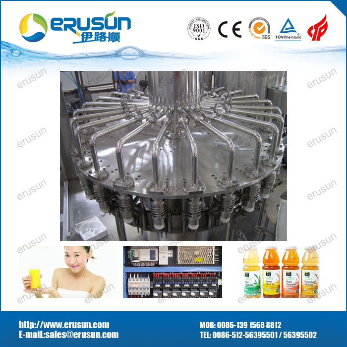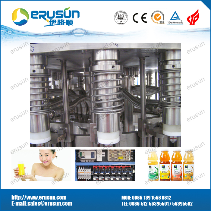 适用产品: 果汁、茶饮料、功能性饮料等 热灌装机标准机型为“三合一”,针对特殊生产条件,可增加一道消毒液冲瓶,即“四合一”。系统充分考虑饮料产品的特性(如茶饮料和混合果汁饮料易起泡)及热灌装的主要技术要求。