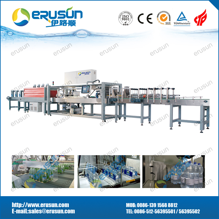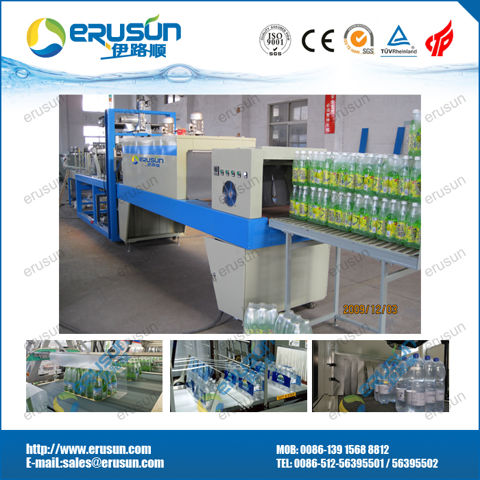 热收缩包装机 广泛适用于饮料、食品、医药化工用品等组合包装。无需纸箱,无论方形、圆形、扁形均可包装完美,直观效果甚佳,是饮料灌装生产线的首选配套设备。 技术特点 结构合理、工作可靠:本机光、机、电相结合,合理采用了机械同步传动与电气多轴伺服同步相结合的原理,减少了复杂的机械传动链,提高了机械传动的准确性,使机器结构合理,可靠。 性能先进:本机采用世界先进的伺服电机同步控制技术、薄膜冷却技术、薄膜张力控制技术和瓶子无压力控制技术,因而机器具有较高的技术含量。 自动化程度高:本机采用先进的光电控制技术,控制系统由特殊的编码器、PLC、先进的检测元件和国外知名品牌的电磁离合器组成,能自动检测出瓶子、纸板、薄膜的状态。人为造成的机器局部机构位置的改变,不影响机器的同步运行,机器可监测通过计数脉冲检测出的卷膜存储量,存储量不足时自动报警;热收缩通道的温度可自动实现恒温控制;薄膜输送及切断也是在特殊的控制系统控制下实现的。 适用范围广:本机大量采用了可调机构,扩大了机器的使用范围。适用瓶型为瓶径Φ50~Φ90mm、高度200~350mm的圆型容器,每包可在4~16支的范围内调整。 安全可靠:本机外部采用可拉式防护门,机器在封闭状态下运行,当防护门拉开时,安全限位开关断开,机器停止运转。 包装速度:8包/分,15包/分,25包/分,35包/分