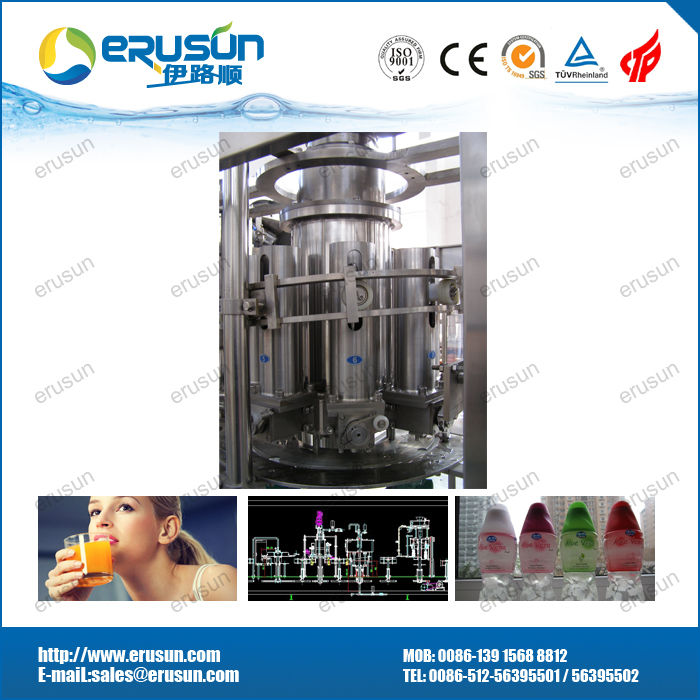 概述 ERUSUN果肉灌装四合一机是一种集冲洗、果肉灌装、果汁灌装、封盖于一体的中(高)温灌装机,果肉、果汁分两次灌装解决了果肉在物料中含量不均的问题。 技术参数