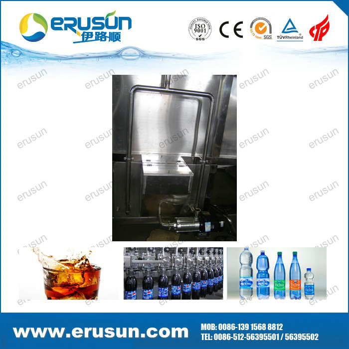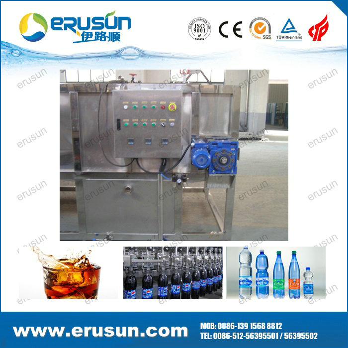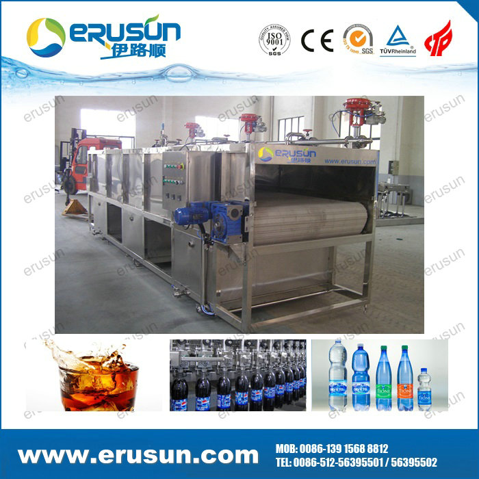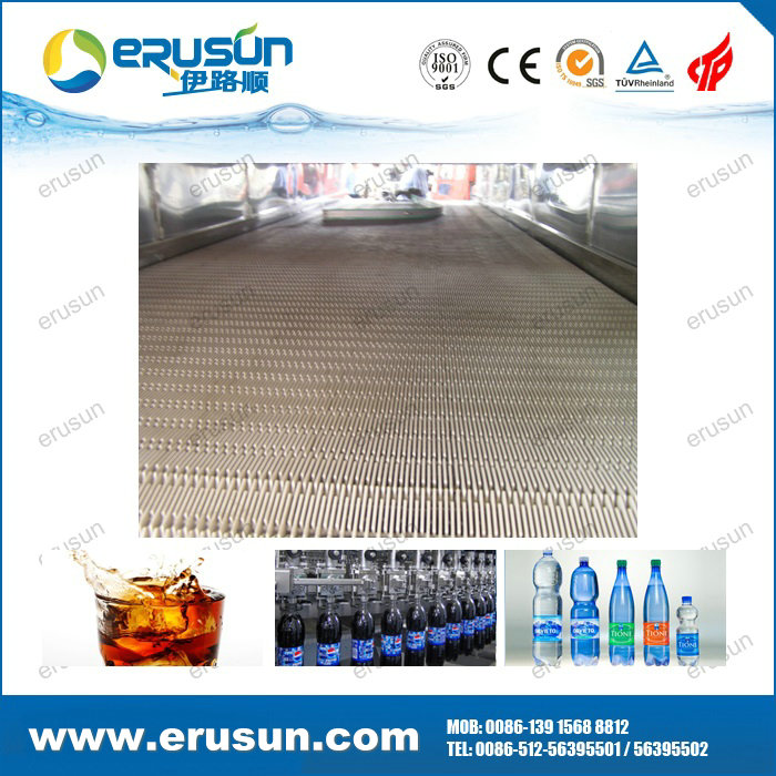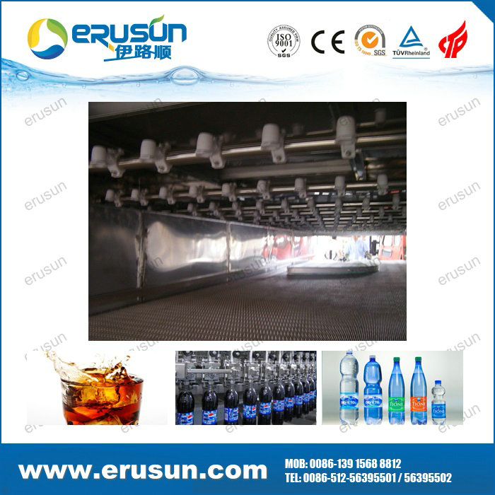 В результате того, что газированныый напиток использует налив при низкой температуре(2℃-5℃), а комнатная температура летом гораздо превысит данной температуры, в такой окружающей среде воде в воздухе легко конденсироваться в поверхности бутылки и привести неудобство к упаковке и экслпуатации, например: наклейка марки. Особенно если упаковывать бумажной коробкой, то роса будет мочить бумажную плату и привести серьезному повреждению. Поэтому надо установить машину нагрева за машиной налива и нагревать бутылку до комнатной температуры. Машина нагрева является тоннельным оборудование с поливкой, который нагревает бутылку теплообмеником циклической поливки горячей воды, постоянно установлена 3 зоны нагрева(а также проектировать больше зон нагрева), после отдельного нагрева температура центра напитка достигает комнатной, обычно является 30-35℃. Машина негрева бутылки состоит из каркаса, платы цепочки передачи, системы передачи, канал для сохранения воды, циркуляционного насоса, оборудования поливки, нагревательного оборудования и трубопроводов. Можно использовать платинный или электрический теплообменики с паровым источником.